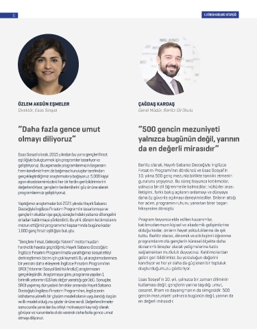 gerçekleştirdiğimiz araştırmalara bağlıyoruz. 5.000 kişiyi 10. yılına 500 genç mezunla birlikte tanıklık etmenin