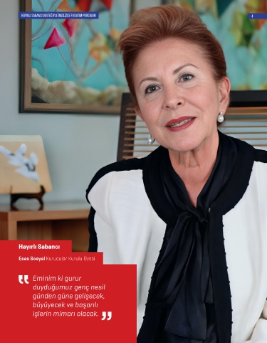 HAYIRLI SABANCI DESTEĞİYLE İNGİLİZCE FIRSATIM PROGRAMI 4 Hayırlı Sabancı Esas Sosyal Kurucular Kurulu Üyesi Eminim ki gurur duyduğumuz genç nesil günden güne gelişecek, büyüyecek ve başarılı işlerin mimarı olacak.